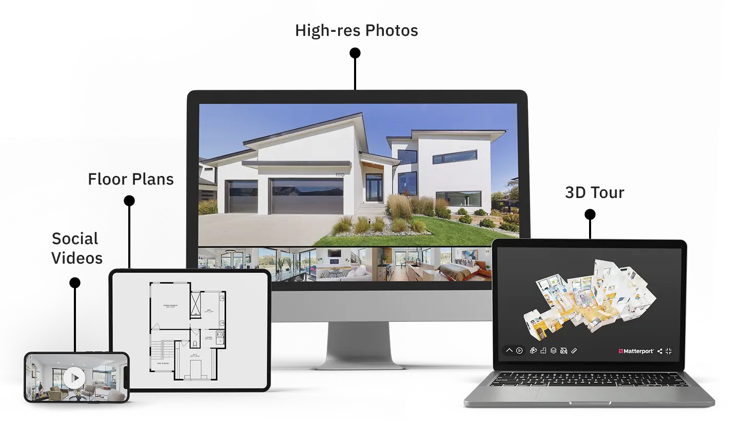 During a single on-site visit, we capture the full Matterport 3D tour and all included media efficiently and professionally.